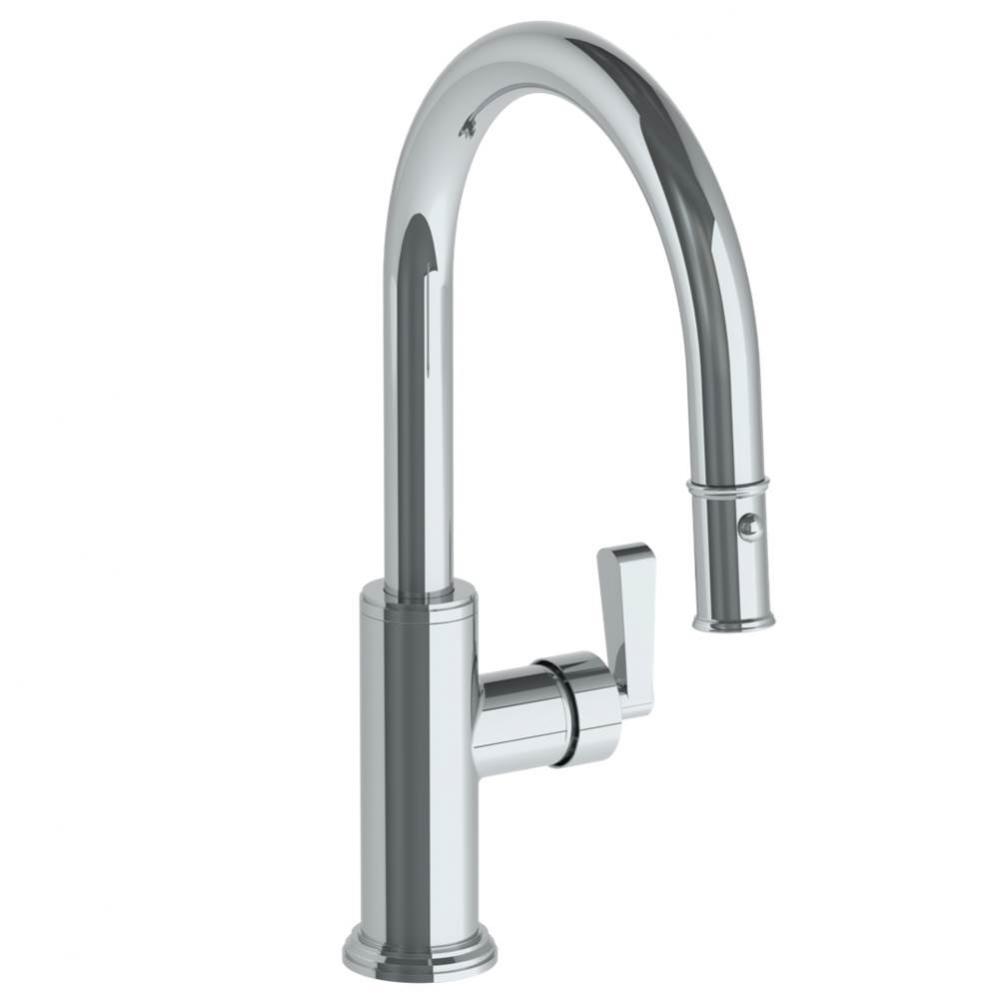 Deck Mounted 1 Hole Gooseneck Kitchen Faucet with Pull Down Spray - Low Spout (29-7.3PG4-TR24-PC)