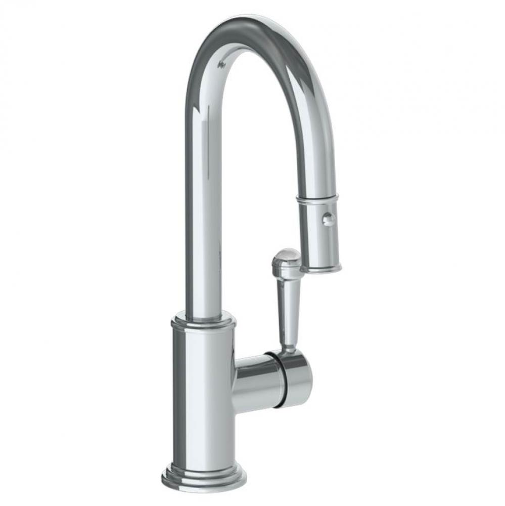 Deck Mounted 1 Hole Gooseneck Prep Faucet with Pull Down Spray