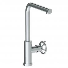 Deck Mounted 1 Hole Square Top Kitchen Faucet with Pull Out Spray - High Spout