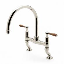 Easton Classic Two Hole Bridge Gooseneck Kitchen Faucet, Oak Lever Handles in Antique