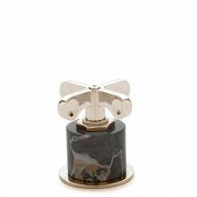 Henry Gooseneck Three Hole Deck Mounted Lavatory Faucet with Portoro Cylinders and Metal Cross