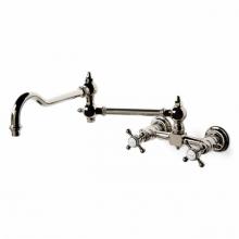Julia Wall Mounted Two Hole Bridge Articulated Kitchen Faucet, Metal Cross Handles in