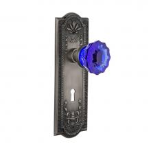 Nostalgic Warehouse Meadows Plate Privacy Crystal Cobalt Glass Door Knob in Antique Brass