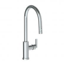 Deck Mounted 1 Hole Gooseneck Kitchen Faucet with Pull Down Spray - Low Spout