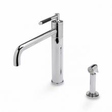 Universal Modern One Hole High Profile Kitchen Faucet, Metal Lever Handle and Spray in Shiny